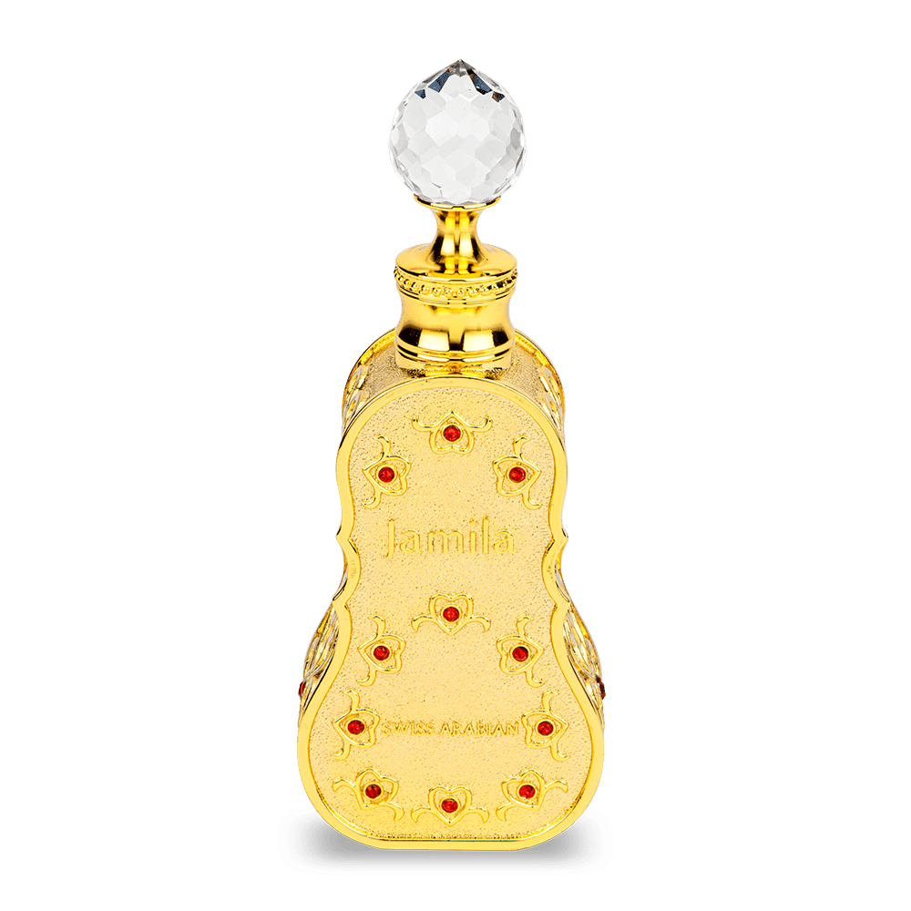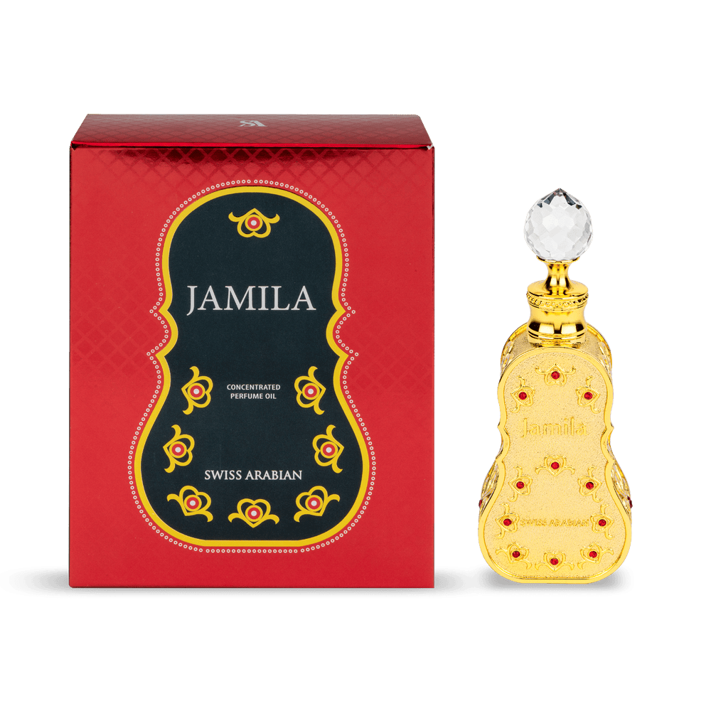 When summer beckons, Jamila answers with a fragrance as lovely as the season itself. It is a fruity, floral, musky fragrance that speaks of the exquisite and the beautiful. Jamila opens with abundant fruits like a sylvan feast. Ripe tangerines, bursting with zest and freshness, combines with crisp apple and dark, sweet marmalade that melts away seamlessly to reveal a fresh uplifting bouquet. The heart notes are an extravagant display of all the best florals a warm day has to offer. White jasmine blurs softly around the edge into roses and soft vanilla orchid. Enthralled by blossoming florals, you are led into rich, dark woods that offer the cool shade of amber, musk and velvety sandalwood. Jamila is concentrated perfume oil for women from Swiss Arabian perfumes. Exquisite beauty.